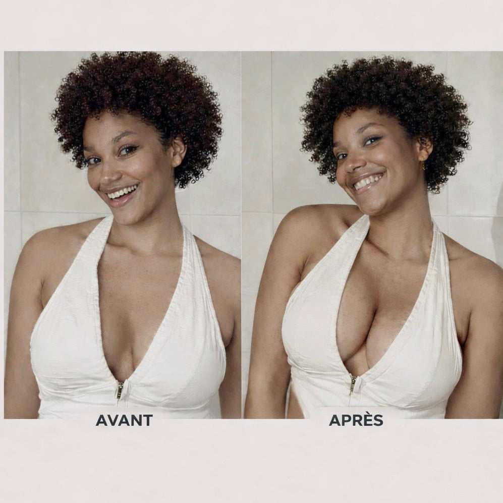 Cette solution épouse parfaitement la peau pour recentrer, rehausser et sublimer naturellement .Son maintien confortable crée un effet push-up naturel résultat : un décolleté plus structuré, tout en restant totalement invisible.